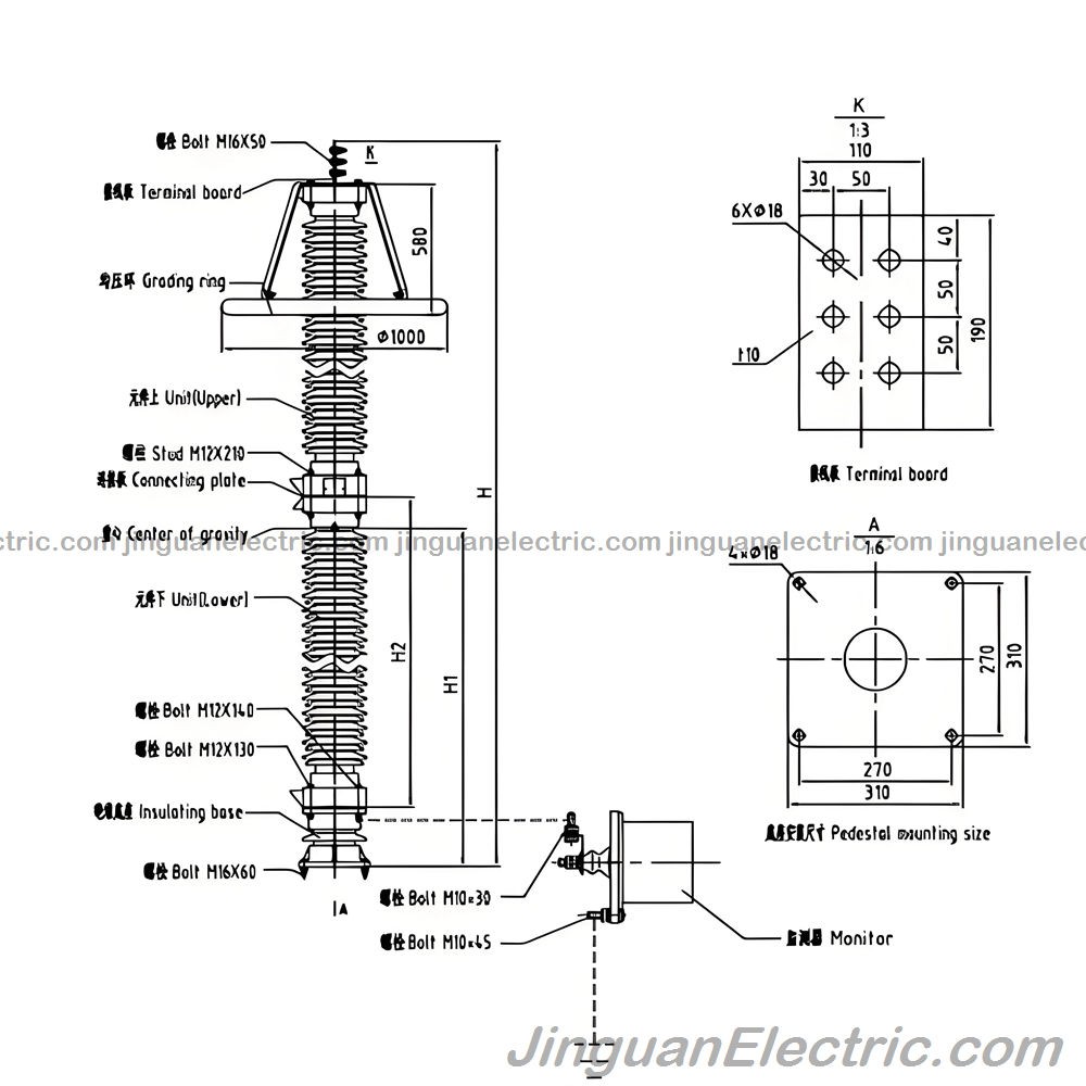 金冠电气贸易专业供应180kV-240kV站用级SM瓷外壳避雷器,10kA标称放电电流,高机械强度,已出口80+国家。