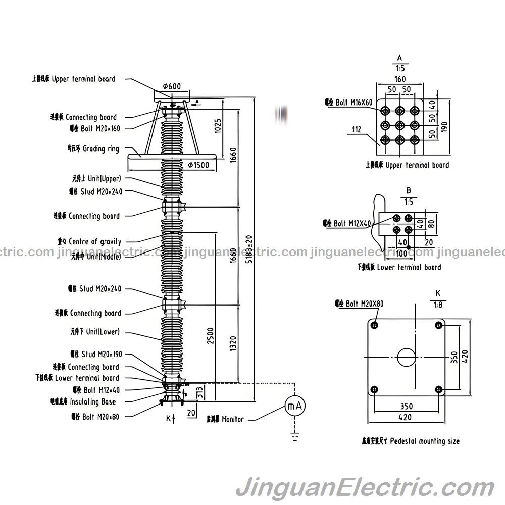 金冠电气贸易专业供应336kV-390kV站用级SH瓷外壳避雷器,10kA标称放电电流,高机械强度,已出口80+国家。